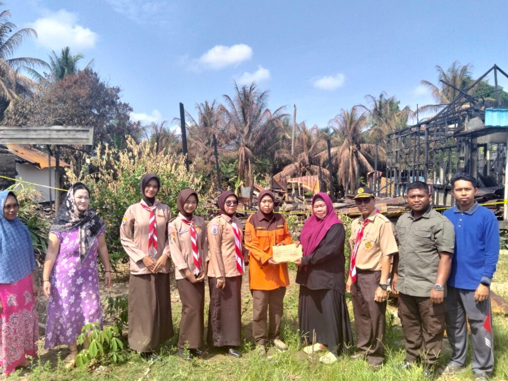 Kolaborasi Pramuka Penegak SMAN 1 Anjir Pasar dan Pramuka Peduli Barito Kuala, Salurkan Bantuan kepada Korban Kebakaran